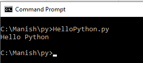 And now we are ready to compile and execute our first python script. Lets have a command prompt and type in the file name and there we go.